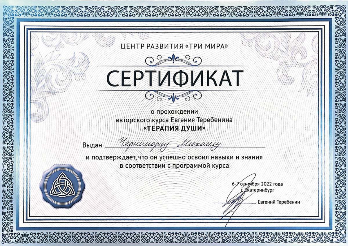 Более 11 000 человек прошли «Терапию Души» и решили свои жизненные запросы. Вебинары по разбору психологических запросов собирают аудиторию более 3 000 человек ежемесячно, а аудитория Онлайн школы Евгения Теребенина составляет более 1 миллиона человек.